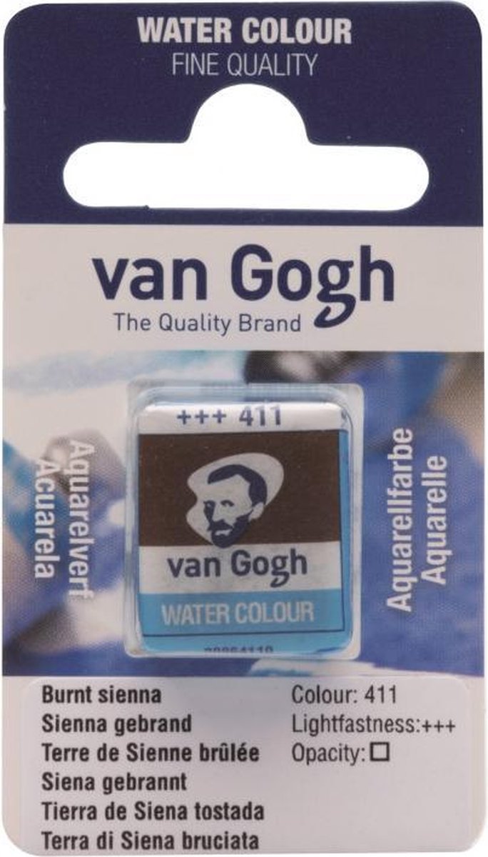 Van Gogh aquarelverf is een verf met een hoge kleurkracht. Alle kleuren hebben een hoge graad van lichtechtheid. De kleuren zijn door de zuiverheid van de verf gemakkelijk te mengen. Met veel water en de juiste penselen kun je de kleuren mengen en mooie verwassingen maken met levendige kleuren. De verf zit in een kunststof blokje en kan los gebruikt worden, maar past ook in de lege opbergdozen. Het assortiment is sinds kort uitgebreid en bestaat nu uit 72 kleuren. Van 11 kleuren is de receptuur verbeterd.