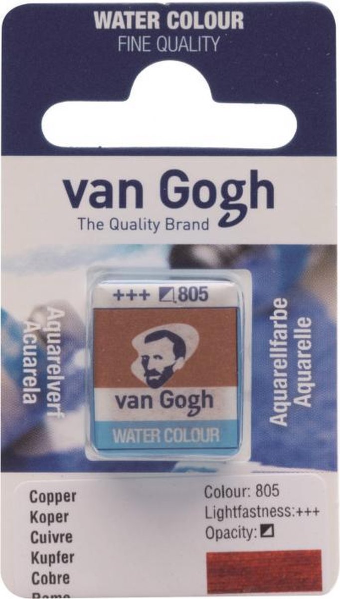 Van Gogh aquarelverf is een verf met een hoge kleurkracht. Alle kleuren hebben een hoge graad van lichtechtheid. De kleuren zijn door de zuiverheid van de verf gemakkelijk te mengen. Met veel water en de juiste penselen kun je de kleuren mengen en mooie verwassingen maken met levendige kleuren. De verf zit in een kunststof blokje en kan los gebruikt worden, maar past ook in de lege opbergdozen. Het assortiment is sinds kort uitgebreid en bestaat nu uit 72 kleuren. Van 11 kleuren is de receptuur verbeterd.