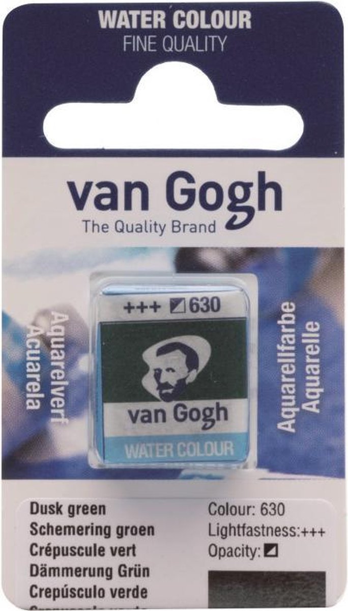 Van Gogh aquarelverf is een verf met een hoge kleurkracht. Alle kleuren hebben een hoge graad van lichtechtheid. De kleuren zijn door de zuiverheid van de verf gemakkelijk te mengen. Met veel water en de juiste penselen kun je de kleuren mengen en mooie verwassingen maken met levendige kleuren. De verf zit in een kunststof blokje en kan los gebruikt worden, maar past ook in de lege opbergdozen. Het assortiment is sinds kort uitgebreid en bestaat nu uit 72 kleuren. Van 11 kleuren is de receptuur verbeterd.