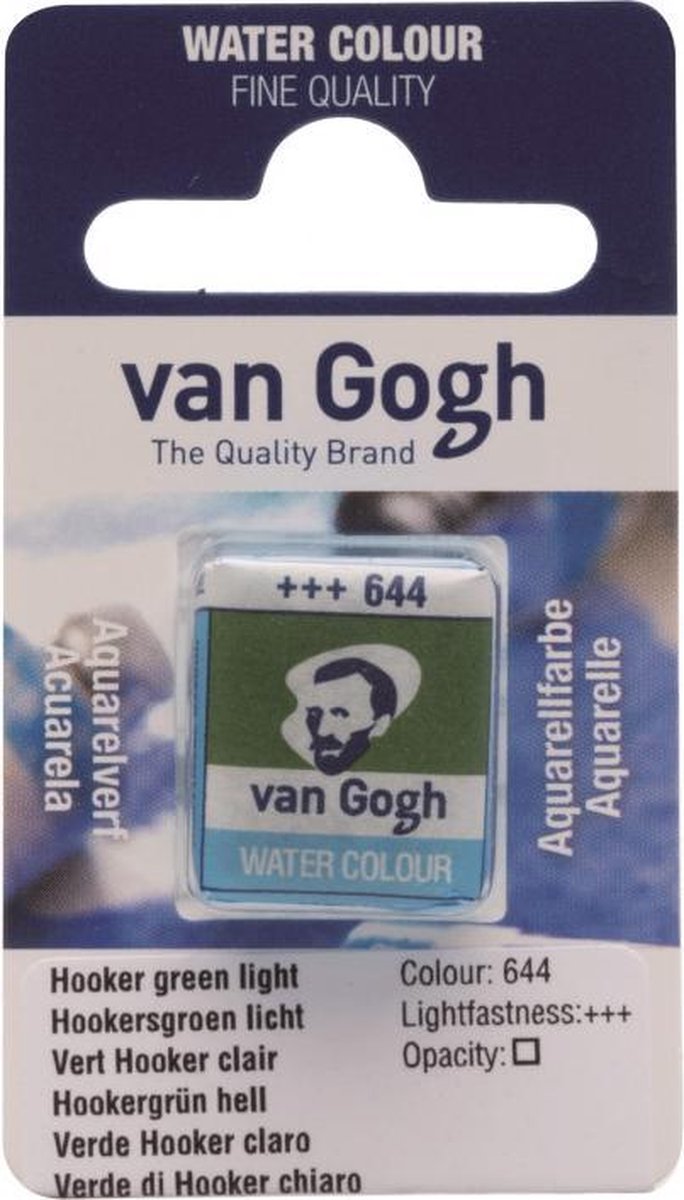 Van Gogh aquarelverf is een verf met een hoge kleurkracht. Alle kleuren hebben een hoge graad van lichtechtheid. De kleuren zijn door de zuiverheid van de verf gemakkelijk te mengen. Met veel water en de juiste penselen kun je de kleuren mengen en mooie verwassingen maken met levendige kleuren. De verf zit in een kunststof blokje en kan los gebruikt worden, maar past ook in de lege opbergdozen. Het assortiment is sinds kort uitgebreid en bestaat nu uit 72 kleuren. Van 11 kleuren is de receptuur verbeterd.