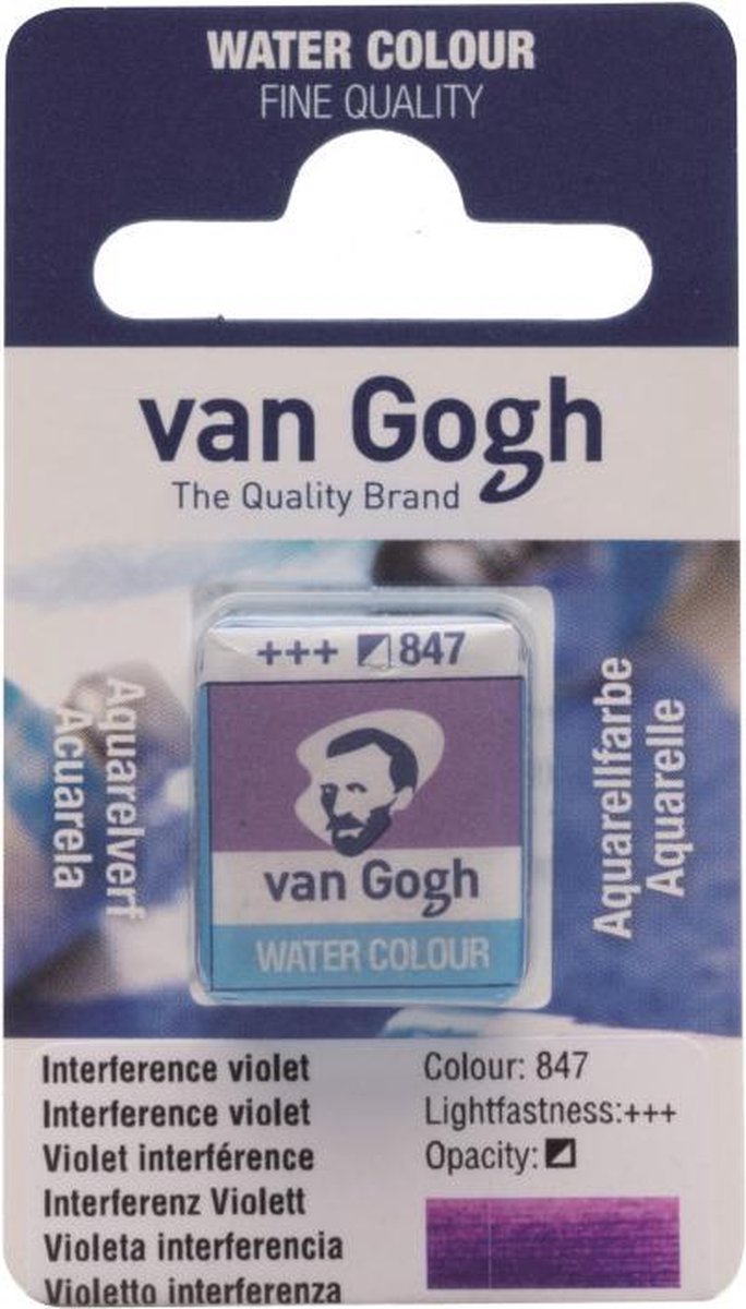 Van Gogh aquarelverf is een verf met een hoge kleurkracht. Alle kleuren hebben een hoge graad van lichtechtheid. De kleuren zijn door de zuiverheid van de verf gemakkelijk te mengen. Met veel water en de juiste penselen kun je de kleuren mengen en mooie verwassingen maken met levendige kleuren. De verf zit in een kunststof blokje en kan los gebruikt worden, maar past ook in de lege opbergdozen. Het assortiment is sinds kort uitgebreid en bestaat nu uit 72 kleuren. Van 11 kleuren is de receptuur verbeterd.