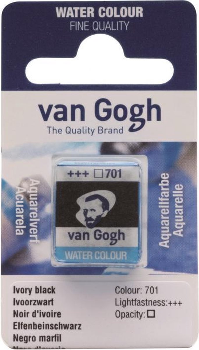 Van Gogh aquarelverf is een verf met een hoge kleurkracht. Alle kleuren hebben een hoge graad van lichtechtheid. De kleuren zijn door de zuiverheid van de verf gemakkelijk te mengen. Met veel water en de juiste penselen kun je de kleuren mengen en mooie verwassingen maken met levendige kleuren. De verf zit in een kunststof blokje en kan los gebruikt worden, maar past ook in de lege opbergdozen. Het assortiment is sinds kort uitgebreid en bestaat nu uit 72 kleuren. Van 11 kleuren is de receptuur verbeterd.