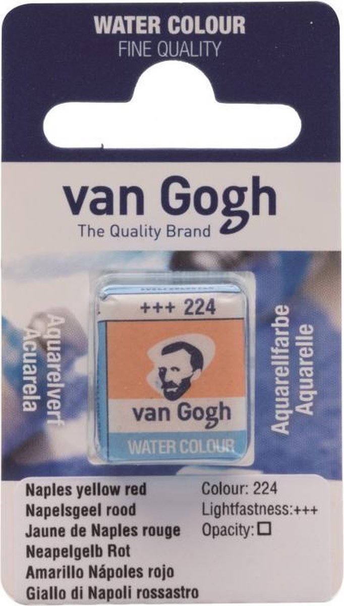 Van Gogh aquarelverf is een verf met een hoge kleurkracht. Alle kleuren hebben een hoge graad van lichtechtheid. De kleuren zijn door de zuiverheid van de verf gemakkelijk te mengen. Met veel water en de juiste penselen kun je de kleuren mengen en mooie verwassingen maken met levendige kleuren. De verf zit in een kunststof blokje en kan los gebruikt worden, maar past ook in de lege opbergdozen. Het assortiment is sinds kort uitgebreid en bestaat nu uit 72 kleuren. Van 11 kleuren is de receptuur verbeterd.