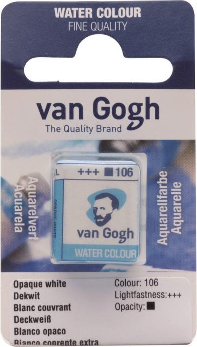 Van Gogh aquarelverf is een verf met een hoge kleurkracht. Alle kleuren hebben een hoge graad van lichtechtheid. De kleuren zijn door de zuiverheid van de verf gemakkelijk te mengen. Met veel water en de juiste penselen kun je de kleuren mengen en mooie verwassingen maken met levendige kleuren. De verf zit in een kunststof blokje en kan los gebruikt worden, maar past ook in de lege opbergdozen. Het assortiment is sinds kort uitgebreid en bestaat nu uit 72 kleuren. Van 11 kleuren is de receptuur verbeterd.