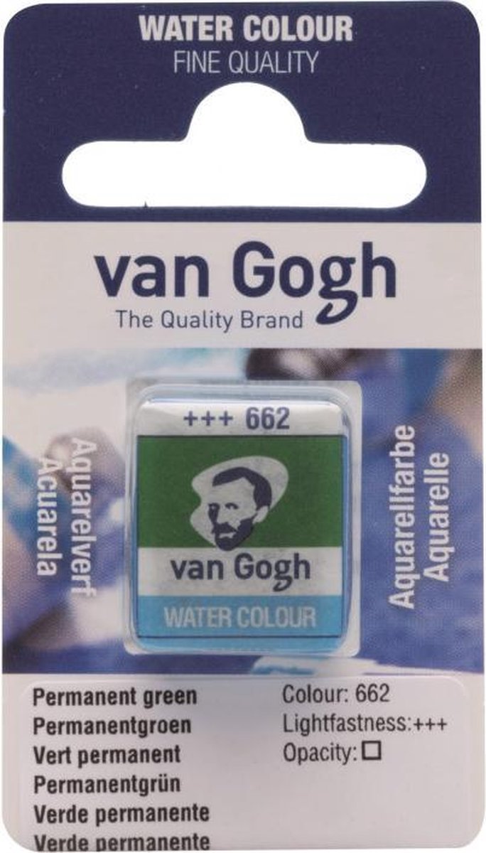 Van Gogh aquarelverf is een verf met een hoge kleurkracht. Alle kleuren hebben een hoge graad van lichtechtheid. De kleuren zijn door de zuiverheid van de verf gemakkelijk te mengen. Met veel water en de juiste penselen kun je de kleuren mengen en mooie verwassingen maken met levendige kleuren. De verf zit in een kunststof blokje en kan los gebruikt worden, maar past ook in de lege opbergdozen. Het assortiment is sinds kort uitgebreid en bestaat nu uit 72 kleuren. Van 11 kleuren is de receptuur verbeterd.