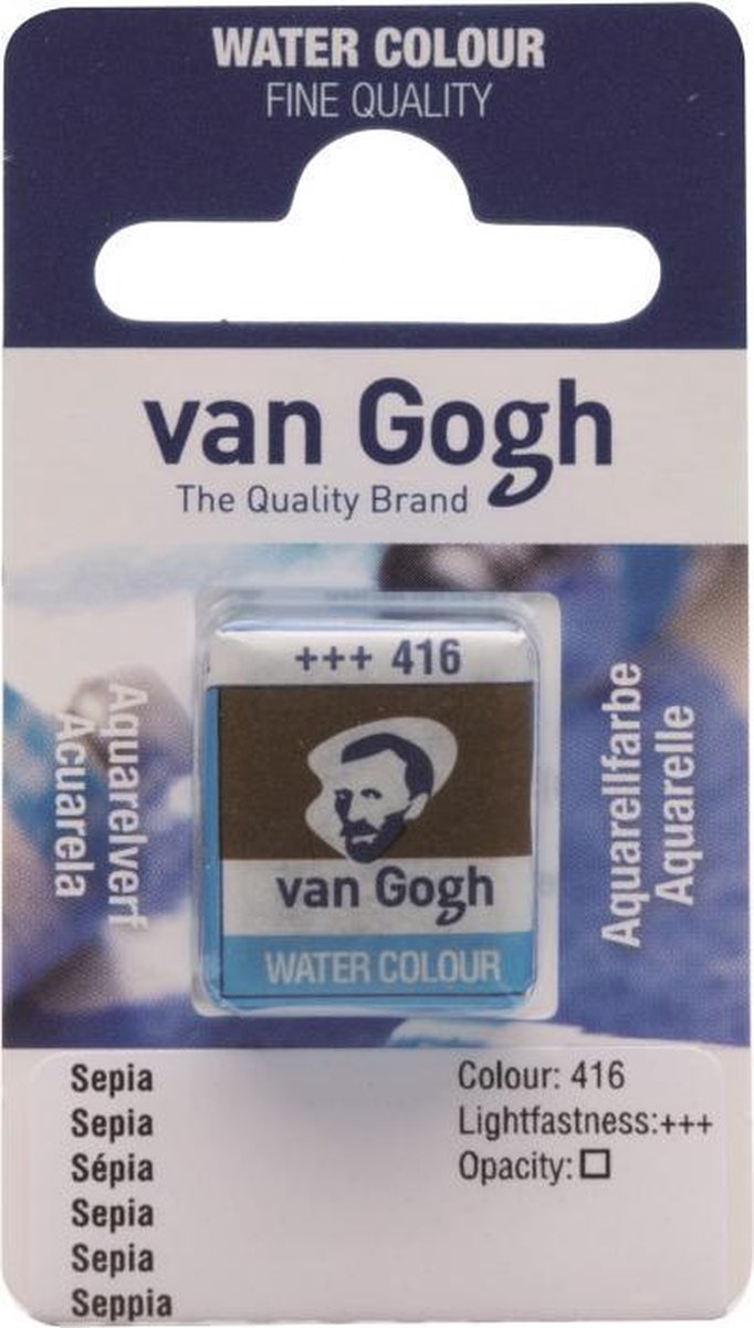 Van Gogh aquarelverf is een verf met een hoge kleurkracht. Alle kleuren hebben een hoge graad van lichtechtheid. De kleuren zijn door de zuiverheid van de verf gemakkelijk te mengen. Met veel water en de juiste penselen kun je de kleuren mengen en mooie verwassingen maken met levendige kleuren. De verf zit in een kunststof blokje en kan los gebruikt worden, maar past ook in de lege opbergdozen. Het assortiment is sinds kort uitgebreid en bestaat nu uit 72 kleuren. Van 11 kleuren is de receptuur verbeterd.
