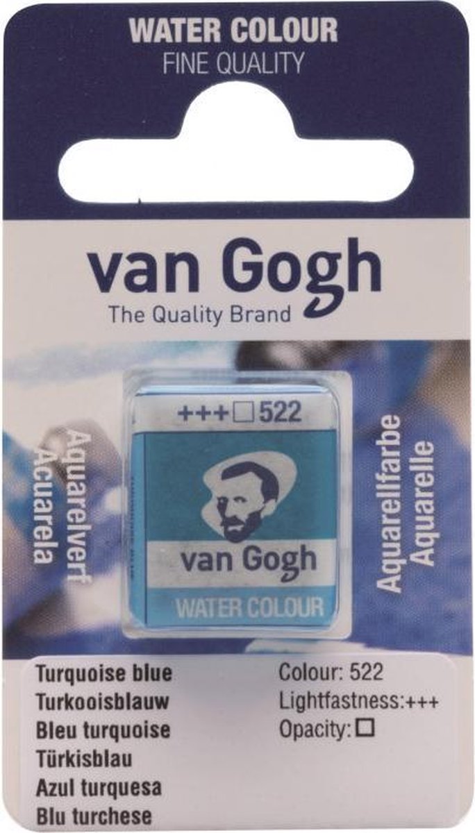 Van Gogh aquarelverf is een verf met een hoge kleurkracht. Alle kleuren hebben een hoge graad van lichtechtheid. De kleuren zijn door de zuiverheid van de verf gemakkelijk te mengen. Met veel water en de juiste penselen kun je de kleuren mengen en mooie verwassingen maken met levendige kleuren. De verf zit in een kunststof blokje en kan los gebruikt worden, maar past ook in de lege opbergdozen. Het assortiment is sinds kort uitgebreid en bestaat nu uit 72 kleuren. Van 11 kleuren is de receptuur verbeterd.