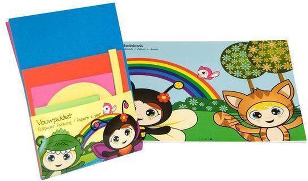 Eindeloos knutselen met dit leuke pakket, bestaande uit een mooi schetsboek en een vouwpakket met diverse soorten en kleuren papier.