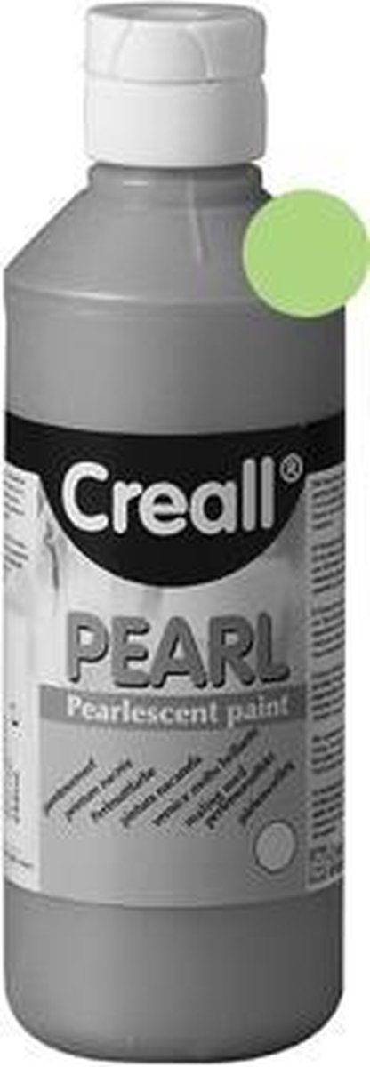 Creall Parelmoerverf Waterbestendig. Gebruiksklaar. Na droging zijdeglans. Flacon van 250 ml. Kleur: groen
