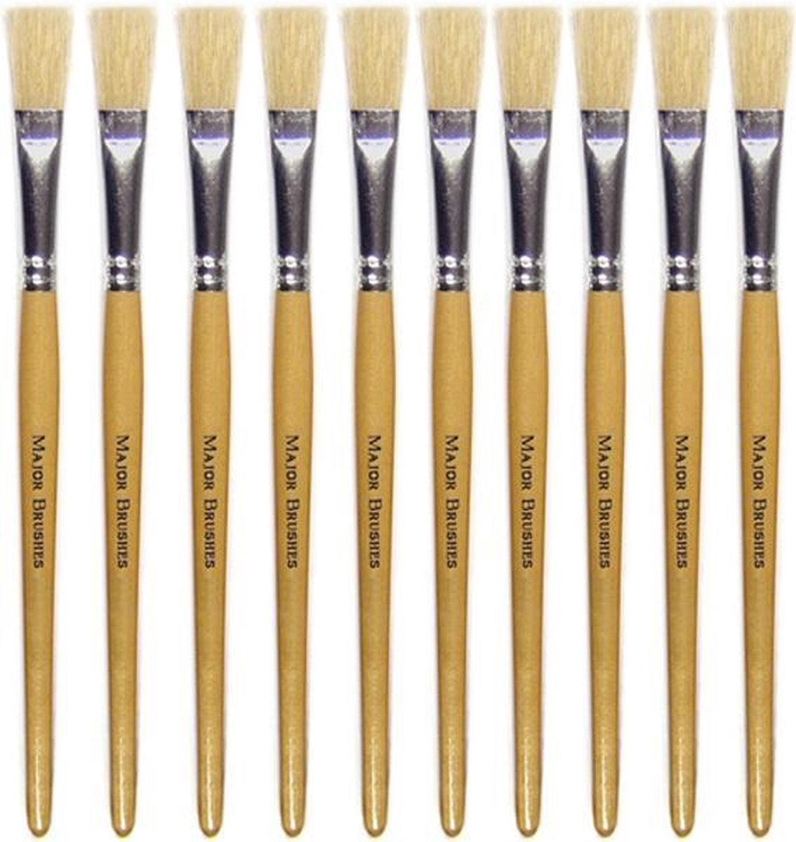 Verf Penseel Naturel Plat Nr. 14 - Set van 10 stuks. 10 platte verfkwasten (varkenshaar) voor kinderen in naturel look. Door zijn korte lengte zijn deze verf penselen of verfkwasten de perfecte verfborstel voor de jonge kunstenaars. Ze hebben een totale lengte van circa 19 cm. Prijs is voor één set van 10 stuks.