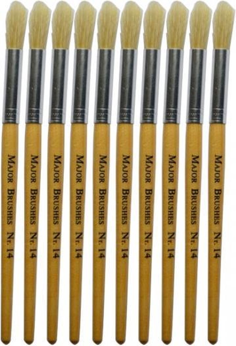 Verf Penseel Naturel Rond Nr. 14 - Set van 10 stuks. 10 verfkwasten voor kinderen in naturel look. Door zijn korte lengte zijn deze verf penselen of verfkwasten de perfecte verfborstel voor de allerkleinsten. Ze hebben een totale lengte van circa 20 cm. Prijs is voor één set van 10 stuks.