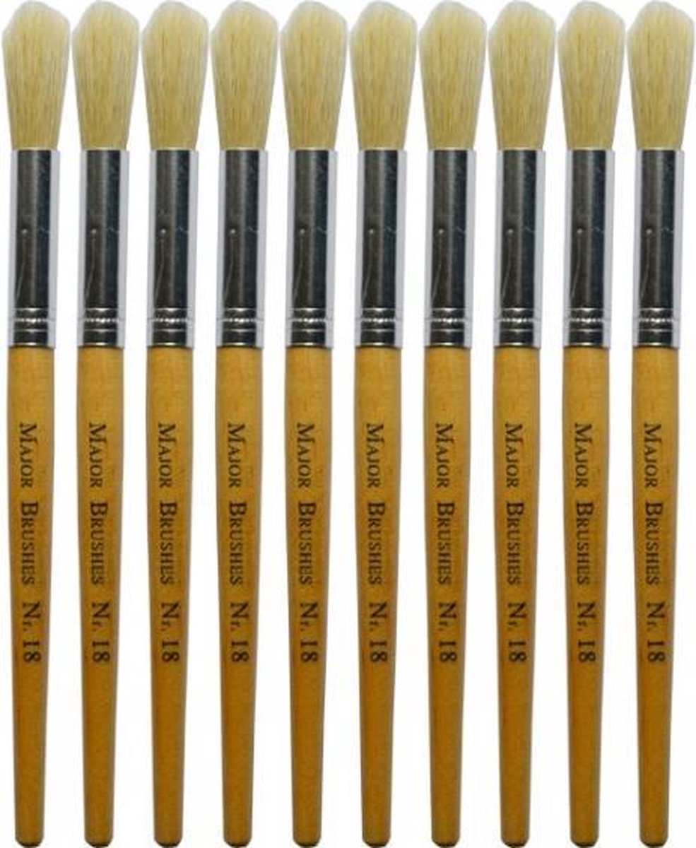 Verf Penseel Naturel Rond Nr. 18 - Set van 10 stuks. 10 dikke verfkwasten voor kinderen in naturel look. Door zijn korte lengte zijn deze verf penselen of verfkwasten de perfecte verfborstel voor de allerkleinsten. Ze hebben een totale lengte van circa 21 cm. Prijs is voor één set van 10 stuks.
