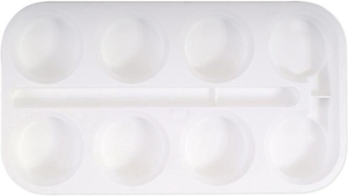 Verfbakje leeg van kunststof in de kleur wit. Geschikt voor 8 verftabletten van 44 mm doorsnede