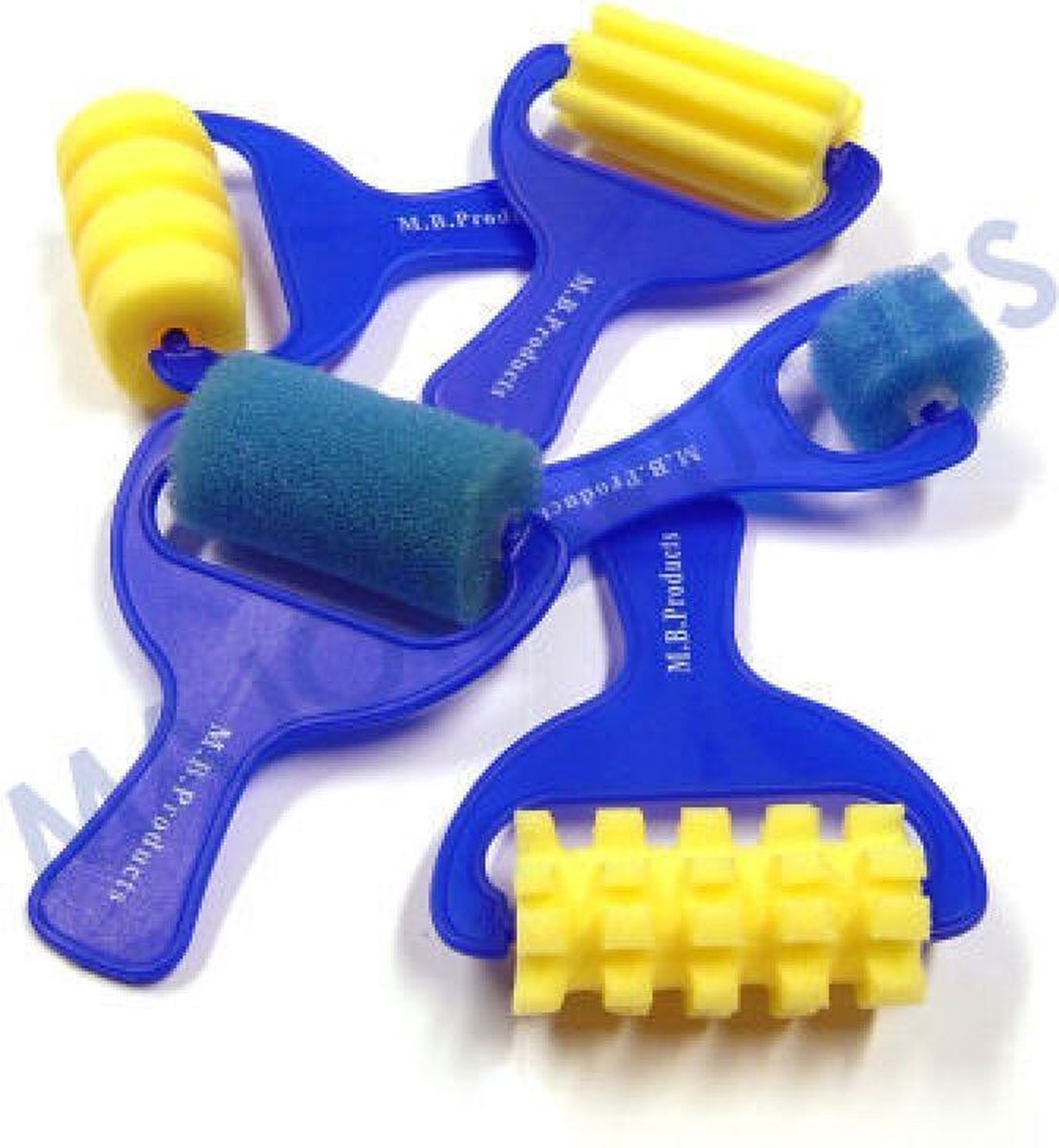 Set van 5 verfrollers met diverse motieven. De foam verfrollers zijn 7 cm breed en hebben een diameter van 4 cm, de totale lengte van de rollers (met handvat) is 13 cm. Een intern plastiek busje dat vast gelijmd zit aan de foam roller zorgt ervoor dat de rol nooit slipt en heel soepel rond draait. Ze worden geleverd in de plastiek zakje. Prijs is voor één set (= 5 foam verfrollers).