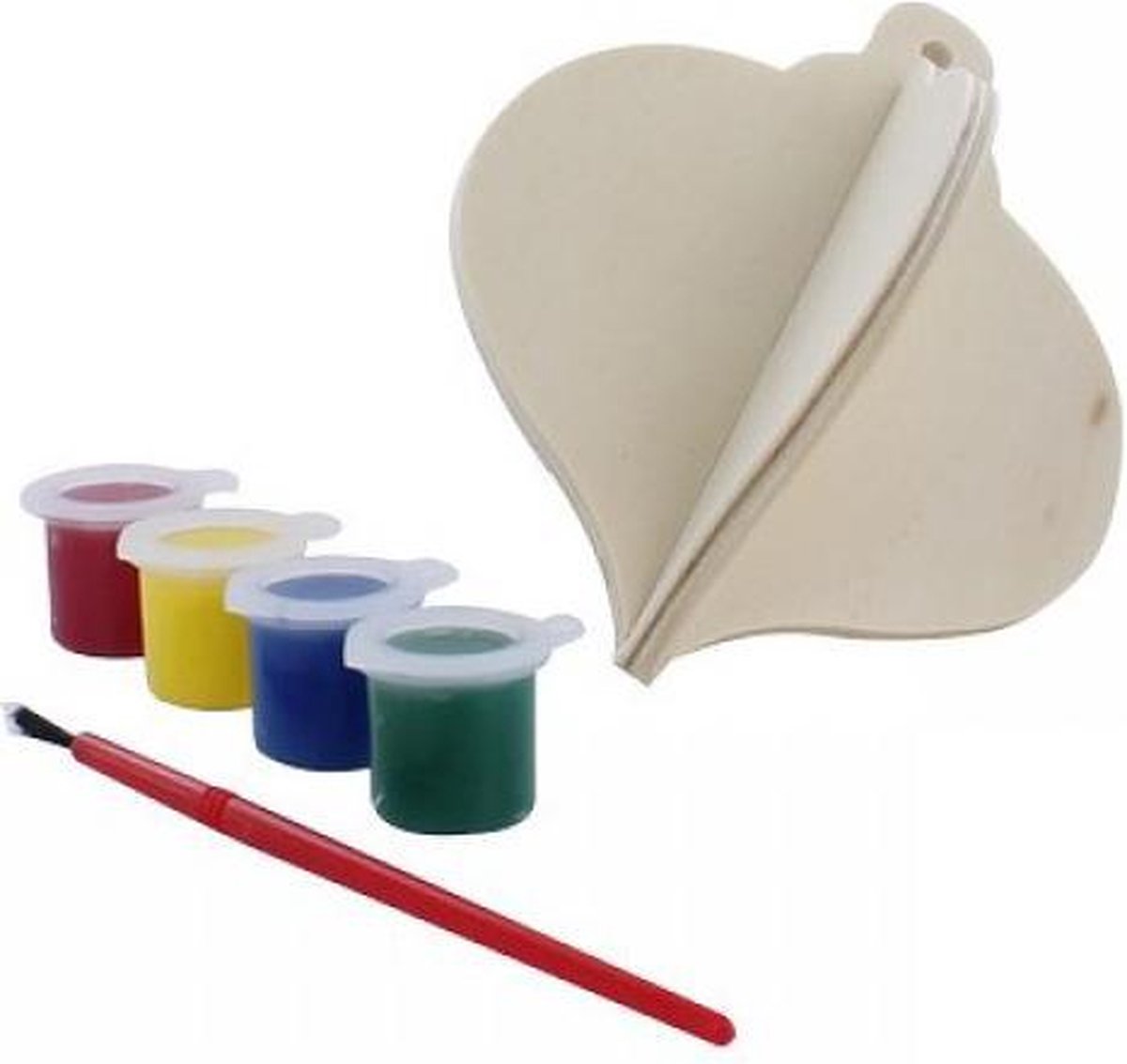 Verfset uit hout in de vorm van een kerstbal. Set inclusief 4 kleuren verf en penseel. Ideaal voor de kinderen om hen creatief bezig te houden!
