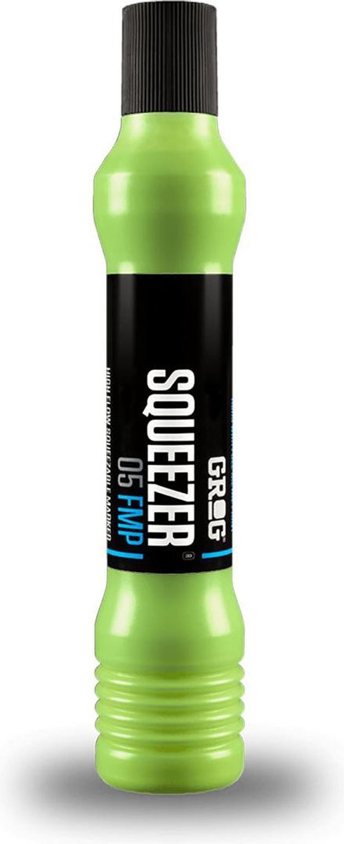 De verfstiften van Grog zijn hervulbaar. Bestel gemakkelijk de navul verf online. De GROG SQUEEZER 05 FMP is een uitknijpbare verf marker, wat een stuk nauwkeuriger werkt dat een verfspuit. Uitgerust met een FLOWTEX ronde punt van 5 mm, in combinatie met een zachte body, is dit de tool om je stad definitief uit te wissen. SQUEEZER 05 FMP wordt geleverd met 45 ml FULL METAL PAINT - Zachte body geeft comfort en controle - 5mm ronde punt schrijft gemakkelijk en bied nauwkeurigheid - Hervulbare marker gaat super lang mee - Nieuwe formule geeft fantastisch effect op gladde oppervlakken - 45ml verf in het goen