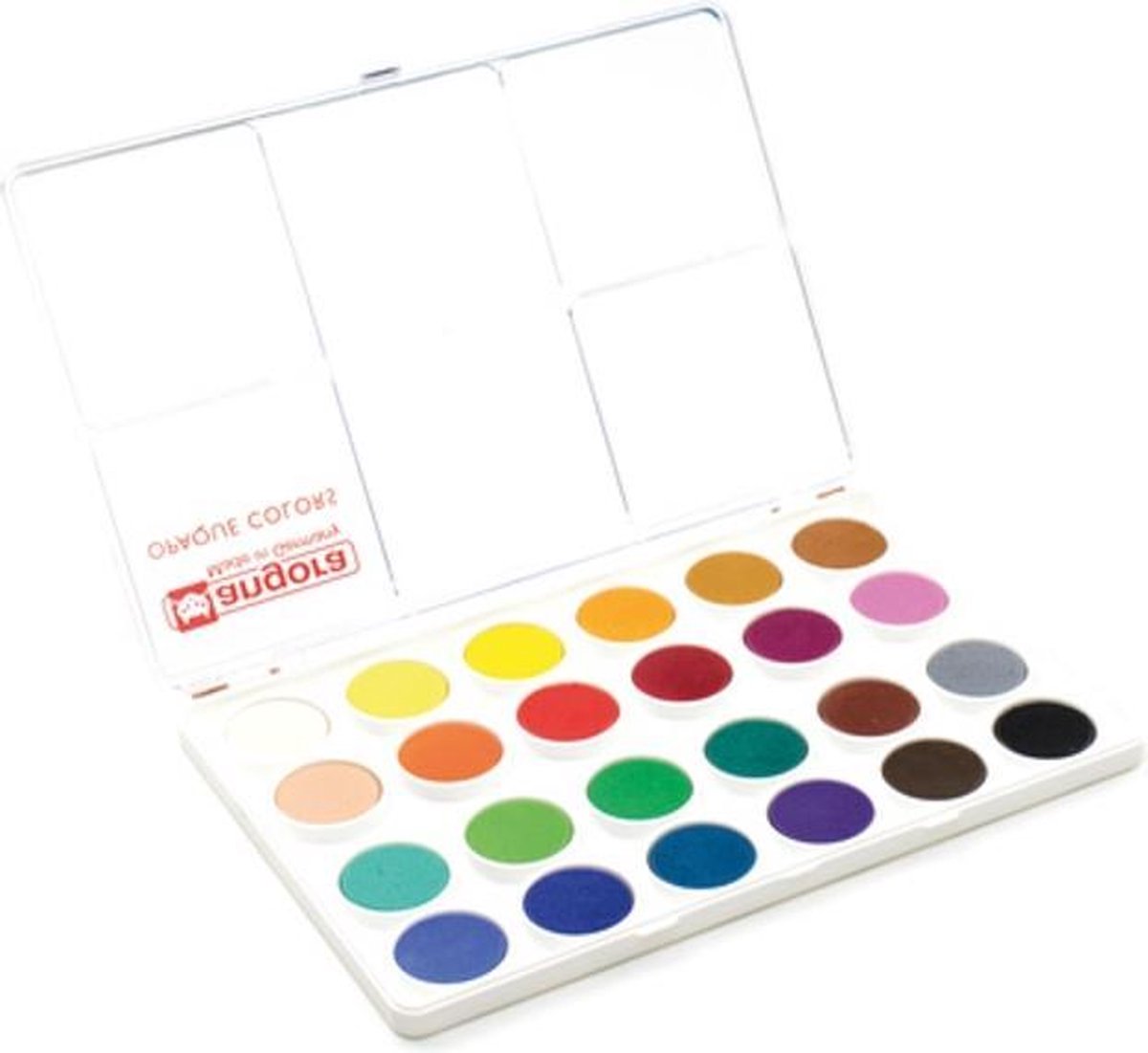 De verftabletten zijn vervaardigd van hoogwaardige pigmenten. Daardoor zijn de kleuren helder en hebben een goede dekking. Napjes zijn niet uitwisselbaar. Geleverd in een kunststof etui. De deksel is geschikt als mengpalet en kan gemakkelijk worden gereinigd. Inhoud 24 kleuren incl. penseel.