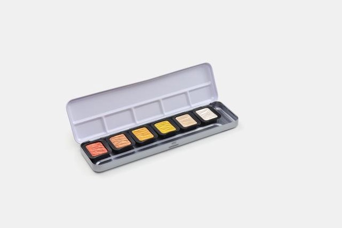 Deze hoogwaardige verftabletten zijn te gebruiken als aquarelverf. Ze kunnen met water verdund worden en zijn onderling mengbaar. Het is dekkend en heeft de mogelijkheid tot glazuren. Voor optimaal resultaat is het aan te raden een synthetische penseel te gebruiken. Rekening houdende met het type huid, is het ook geschikt voor body painting. Doorsnee van de napjes 30mm. Inhoud 4 goudtinten en 2 zilver. Koper, Brons, Olympic Goud, Arabic Goud, Champagne Zilver en Zilver.