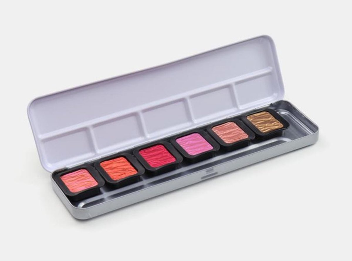 De dekkende parelglanskleuren ontvouwen op alle ondergronden hun unieke kleur en schittering. Deze set bevat de kleuren: herfstgoud, tangelo, robijn, fuchsia, goudroze en hazelnoot.