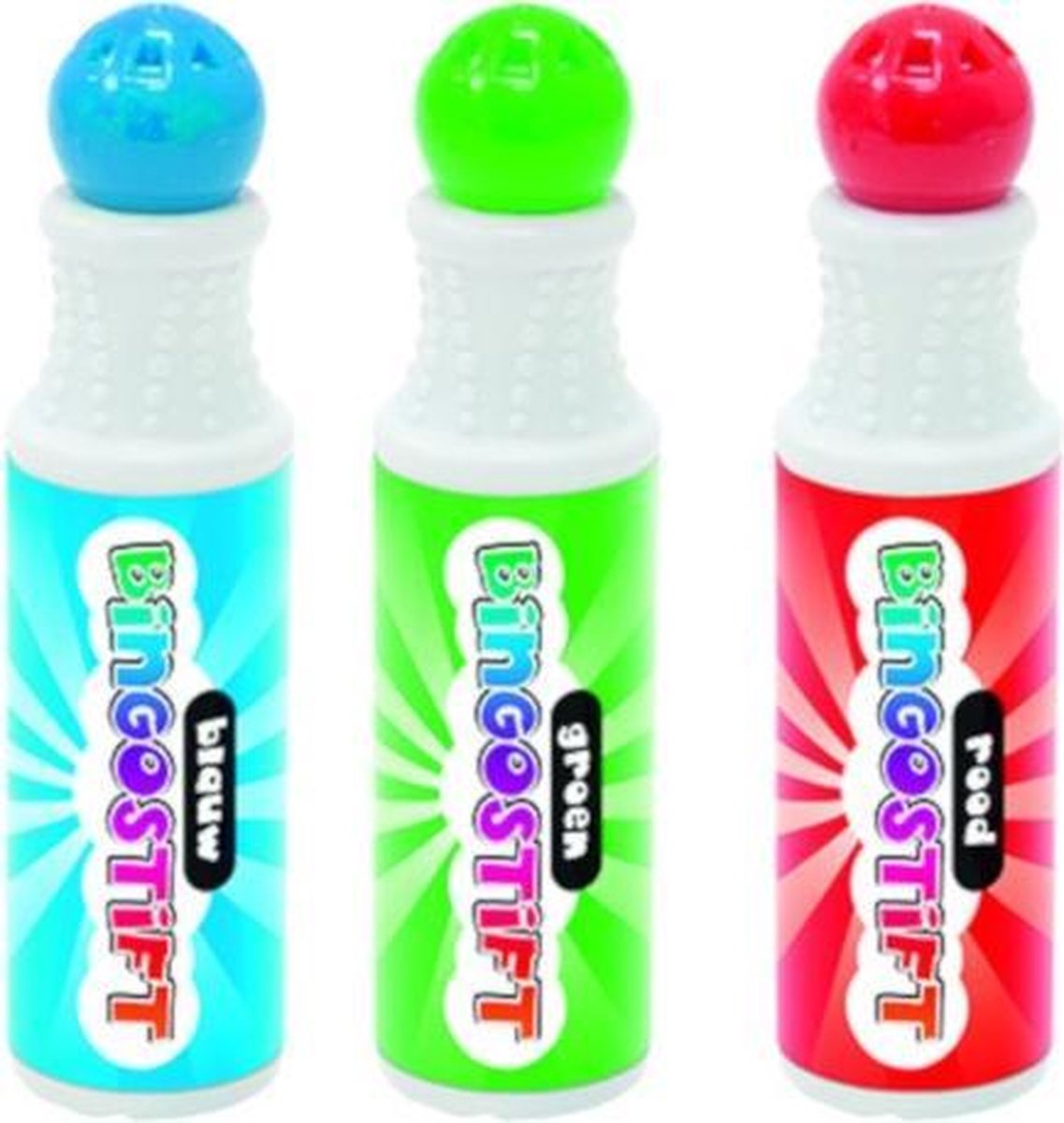 Verhaak bingostiften Hoe leuk is bingo? Het is vooral leuk om getallen weg te strepen die jij op jou papiertje hebt staan. Met deze kleurrijke bingostiften wordt het nog leuker om de getallen die jij hebt weg te strepen! Specificaties: Geslacht: junior Kleur: blauw, groen, rood Materiaal: kunststof Lengte: 11 cm Inhoud: 40 ml Leeftijd: vanaf 4 jaar Inhoud: 3 Bingostiften