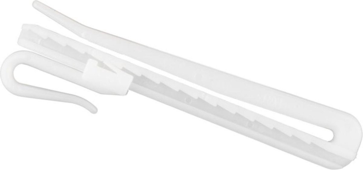 PRODUCT OMSCHRIJVING Deze gordijnhaken zijn exact wat u nodig heeft bij het maken van gordijnen! De witte insteekbare gordijnhaken zijn in hoogte verstelbaar, wat er voor zorgt dat de haak niet zichtbaar is wanneer het gordijn is opgehangen en het gordijn altijd op de gewenste hoogte hangt. Om deze haken te gebruiken, moet u gordijnband langs de bovenkant van uw gordijnen hebben genaaid. Deze band bevat kleine gaten waar de haken in gestoken worden. Deze haken zijn ook geschikt ter vervanging van versleten gordijnhaken. Ook verkrijgbaar in 7 cm.