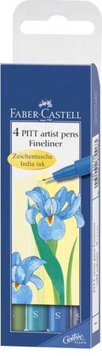 tekenstift FC Pitt Artist Pen S set 4 stuks: blauw 110, kobaltgroen 156, lichtgroen