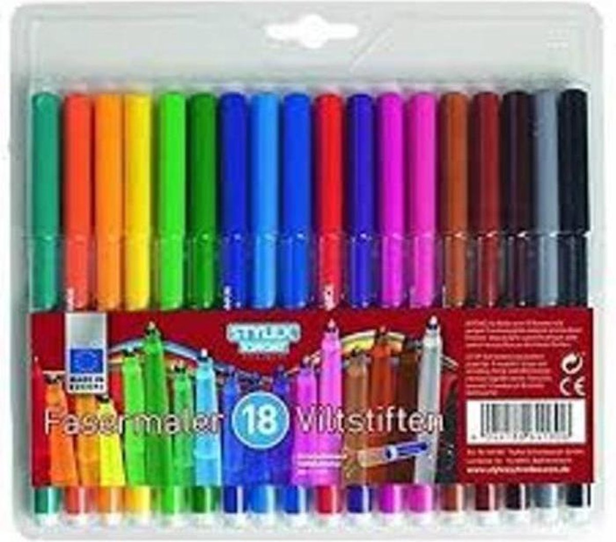 Viltstiften, 18 verschillende kleuren. Met deze viltstiften maakt je de mooiste kleurplaten!
