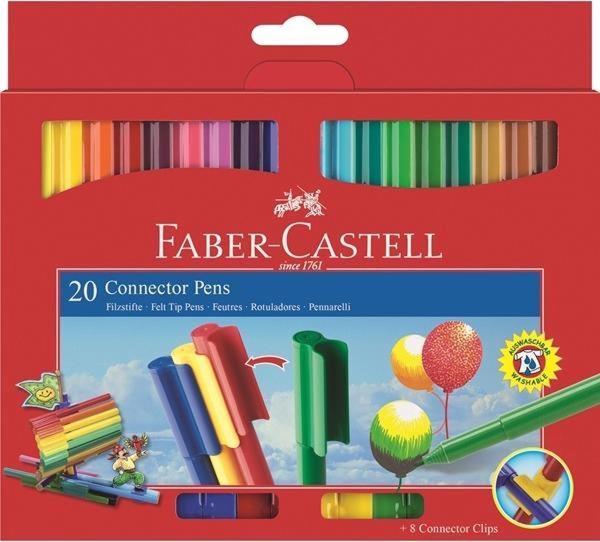 Connector stiften bieden veel mogelijkheden wat betreft het kleuren, knutselen en het opruimen. Vilten stiften met heldere, intense kleuren. Inkt op waterbasis. Uitwasbaar uit de meeste stoffen. Ideaal te combineren met Connector waterverf. De stiften hebben een drukbestendige punt en is ideaal voor kleine handjes. Karton etui