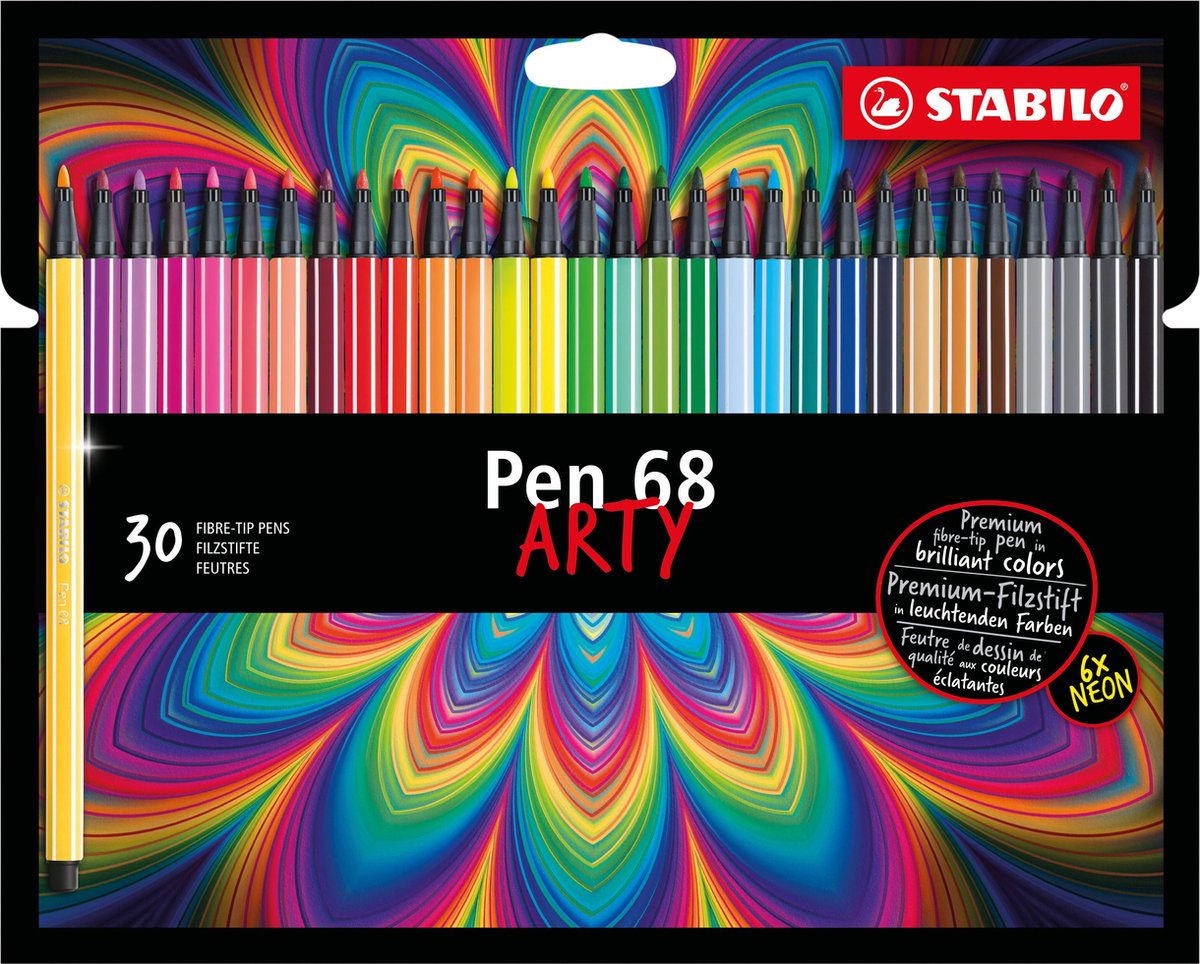 Hoogwaardige viltstift met inkt op waterbasis . Speciaal voor STABILO ontwikkelde grondstoffen zorgen voor schitterende glans en kleurintensiteit. Goed gevormde stabiele penpunten zorgen voor regelmatige inktafgifte. Licht- en schaduweffecten ontstaan door het gebruik van verschillende arceringen. Kwalitatief hoogwaardig tekenpapier wordt aanbevolen. Kopieën, schetsen laten zich prima inkleuren. Toner en watervaste inkt worden niet aangetast. De originele kleuren blijven bestaan. Door gelijkmatig met een vochtig wattenstaafje over de grote vlakken te wrijven ontstaan regelmatige overgangen. Stevig tekenpapier wordt aanbevolen. Vloeiende verlopen en mooie aquareleffecten ontstaan door het mengen van de inkt met water en penseel. De kwaliteit van het papier bepaalt ook de kwaliteit van het mengen. Kenmerken: • Hoogwaardige viltstift • 30 kleuren • Robuuste drukbestendige pen punt, schrijfbreedte ca. 1 mm • Reukloze inkt op waterbasis • Drukt niet door op de volgende pagina