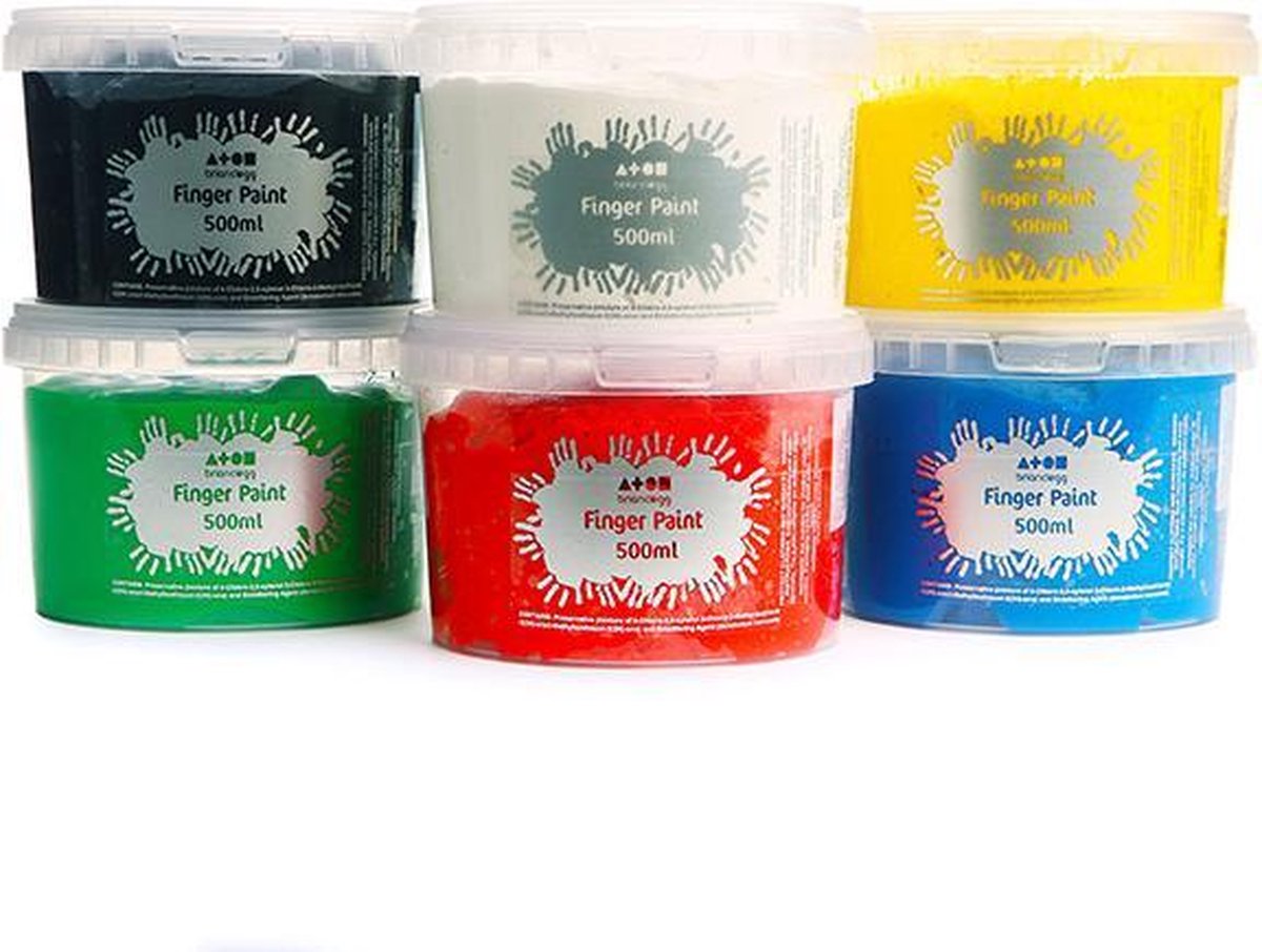 Vingerverf 6 x 500 ml. (6 kleuren). Deze hoogwaardige vingerverf is rijk, levendig en heeft een dikke textuur met een goede dekking. De 500 ml. vingerverven van BRIAN CLEGG zijn verpakt in een grote pot waardoor de kleine kinderen niet enkel hun vingers kunnen gebruiken om te schilderen maar ook hun ganse hand in de verf kunnen deppen.Deze verf droogt op in een dekkende afwerking. De Finger Paint Single Colours vingerverf wordt geleverd in een handige afsluitbare pot. Deze verf is Tarwe-en Glutenvrij en geproduceerd volgens de EN71 veiligheidsnormen voor vingerverf. De firma BRIAN CLEGG is een fabrikant uit de United-Kingdom die sinds 1973 een breed gamma van "Art & Craft" producten maakt voor de educatieve markt ( kleuter-en lagere school, kinderopvang ) zowel in de UK als ver daarbuiten. U kan dus 100% gerust zijn dat u een TOP product in huis haalt.