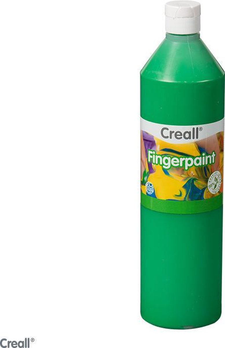 Vingerverf in de kleur GROEN . Flacon van 750 ml. Gebruiksklaar en dekkend. Voor 98% natuurlijke ingredieenten. Waarschuwing: Gebruik door kinderen onder de 3 jaar alleen onder toezicht van een volwassenen. Kleine onderdelen; risico van inslikken. PRESERVATIVE FREE