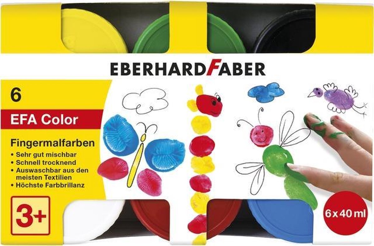 Vingerverf is een waardevol speelmiddel voor thuis en op school. Men kleurt met de vingers maar men kan ook sponsjes, spatels of penselen gebruiken. Doordat de verf een goede dekking heeft kan men deze goed gebruiken op papier, hout of glas. Handen, ramen en kunstattributen kunnen gemakkelijk gewassen worden met water en zeep. Goed mengbaar, sneldrogend en uitwasbaar. Hoogste kleurbriljantie. De potjes zijn allemaal voorzien van een handige schroefdop.