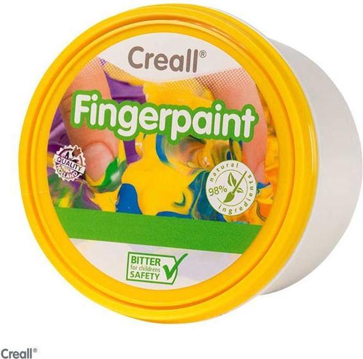 Vingerverf Op waterbasis. Makkelijk verwerkbaar voor de allerkleinsten. Pot van 340 g. Kleur: geel