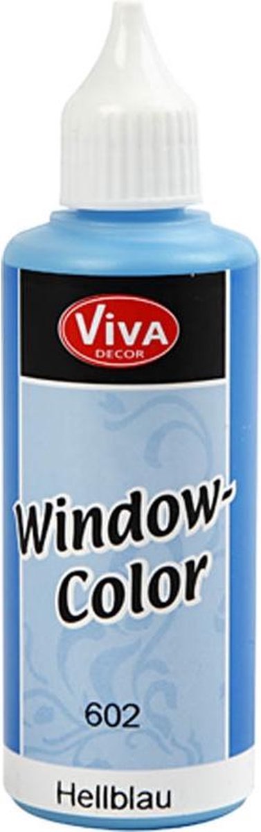 Viva Decor sticker- en glasverf Met deze sticker- en glasverf maak jij de mooiste creaties op ramen, glas en spiegels. Deze fijne verf droogt in 24 uur en zit in een handig flesje met punt. Specificaties: Geslacht: unisex Leeftijd: vanaf 12 jaar Materiaal: kunststof Kleur: lichtblauw