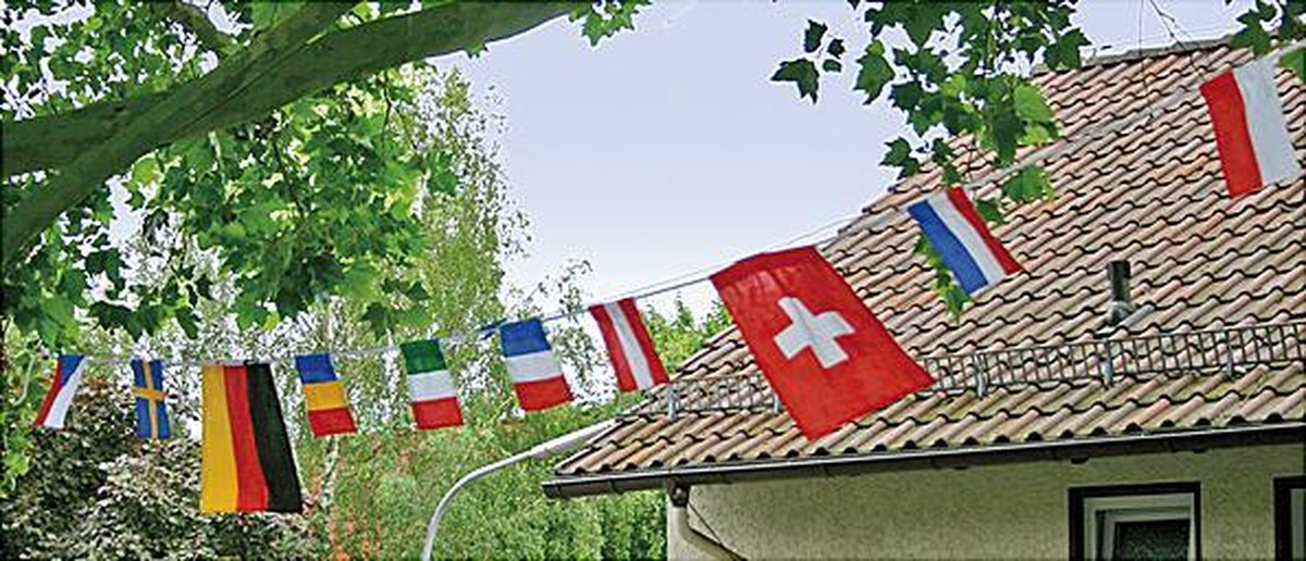 De 10 vlaggen kunnen individueel worden ontworpen met cijfers, bloemen, sterren, vlaggen en geregen aan het 4,9 m lange koord.