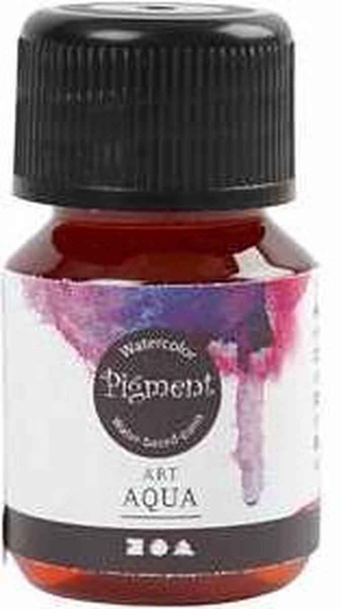 Art Aqua Pigment is een vloeibare, transparante aquarelverf van goede kwaliteit. De kleuren zijn onderling te mengen en kunnen verdund worden met water. Geschikt voor allerlei soorten kunst - kwasten schoon maken met water .