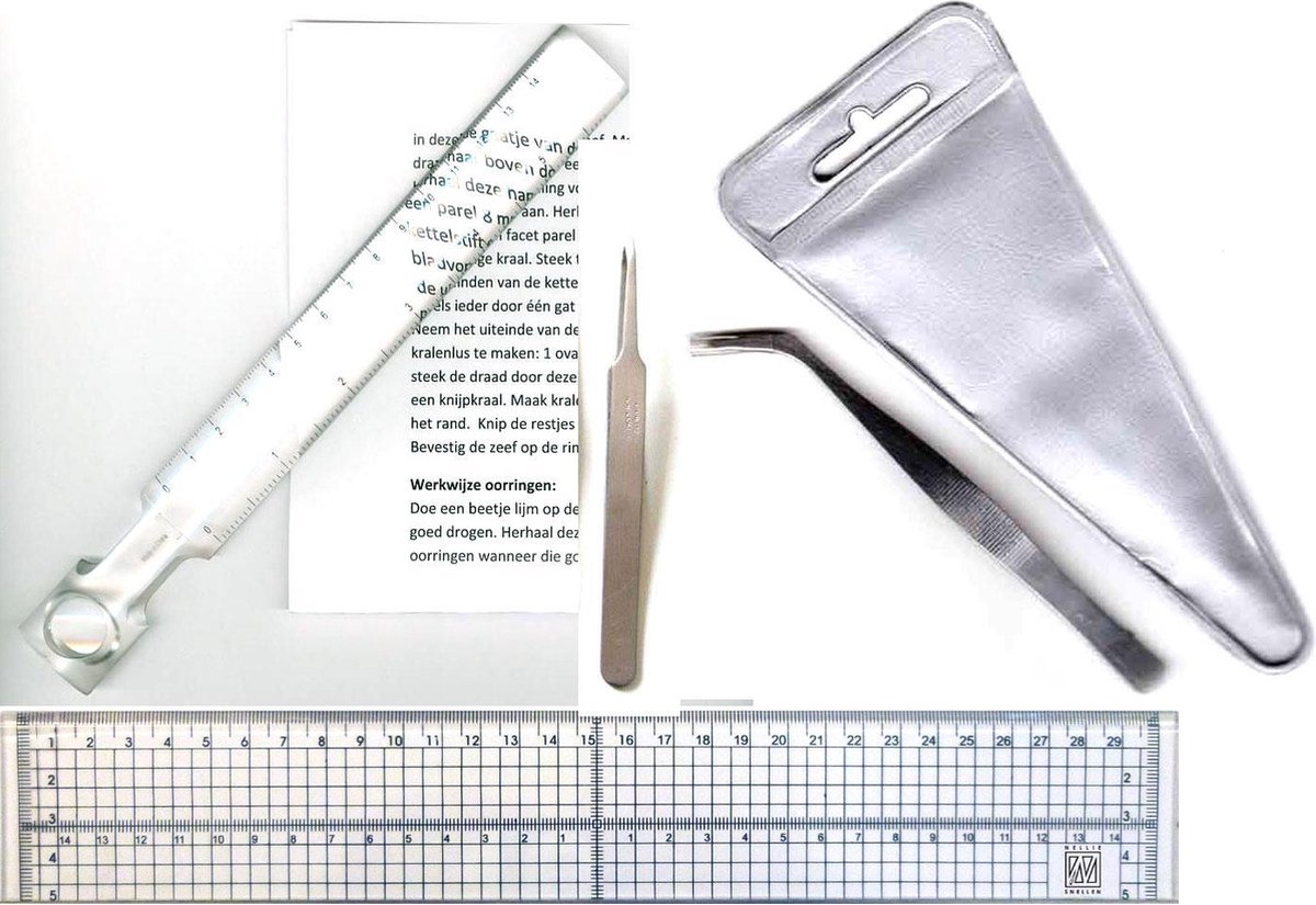 Voordeel Hobby Set: Snijliniaal met metalen Strip - 30cm + Vergrootglas Liniaal + Pincet - 12cm - Gebogen - inclusief Etui + Pincet - Fijn - Recht - 12cm