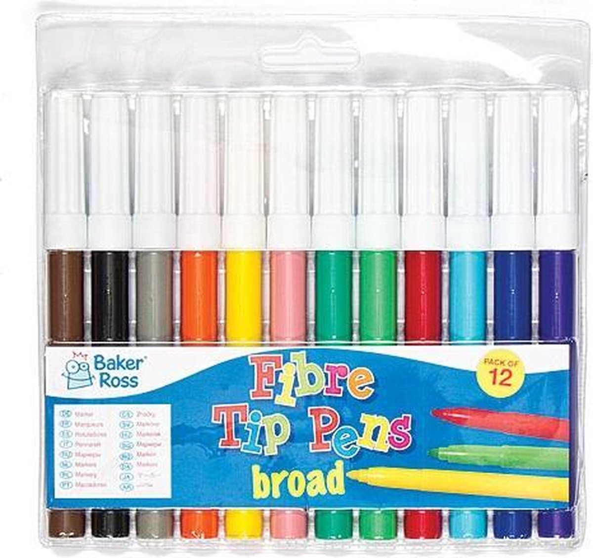 Reuzemarkeerstiften in 12 verschillende levendige kleuren. Dikke stiften om gemakkelijk vast te houden, met een 4 mm dikke punt. Inkt op waterbasis, gemakkelijk uit kleren en van de huid te wassen. 12 stuks per verpakking.