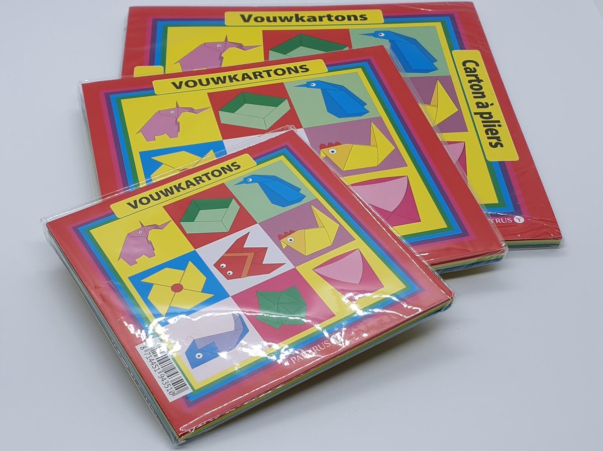 Leuk knutselpakket met 3 verschillende maten vouwkartons. 12x12, 16x16 en 20x20. Genoeg om eindeloos creatief mee te vouwen en knutselen. Ook ideaal als knutselmateriaal voor kinderen. Verpakkingen bevatten de kleuren blauw, geel, groen, oranje en rood Met leuke instructie met enkele origami voorbeelden.