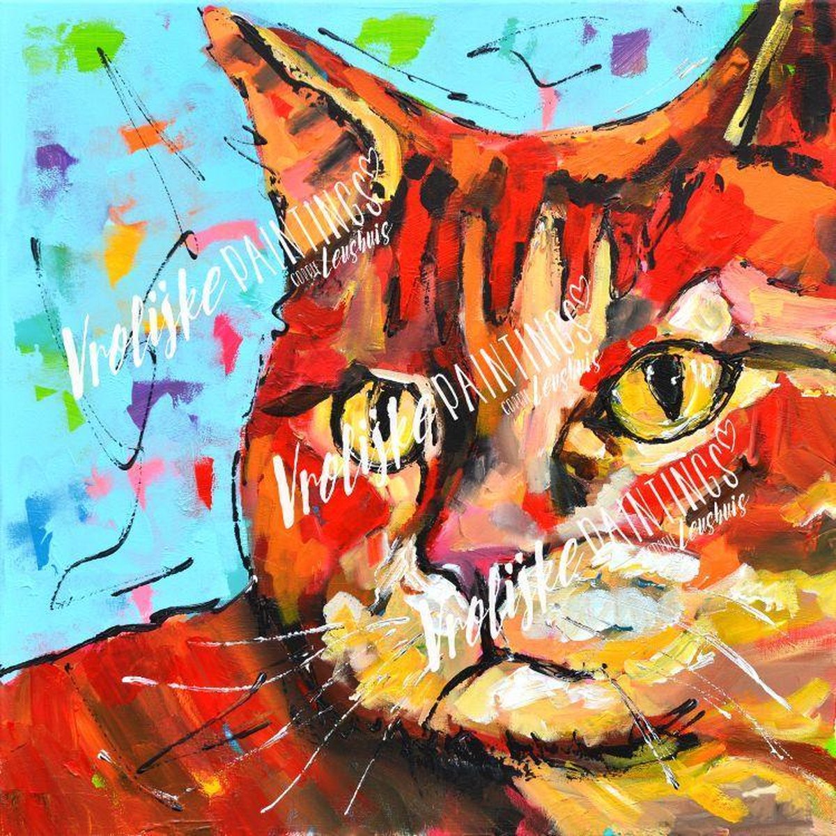 Painting By Number schilderij 'Rode Kat' door Corrie Leushuis. "Deze kater kijkt duidelijk de kat uit de boom. Naar wie of wat zit hij te kijken, wat denken jullie?" Veel painting plezier! ? Corrie Leushuis