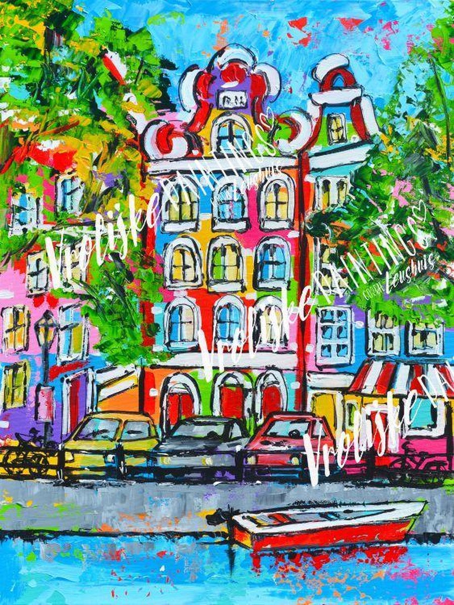 Painting By Number schilderij 'Hollands Huis' door Corrie Leushuis. "Zomaar een dag aan een Hollandse gracht met uitzicht op een heerlijk Hollands huis. Genieten toch?" Veel painting plezier! ? Corrie Leushuis kunstschilder Vrolijke Paintings