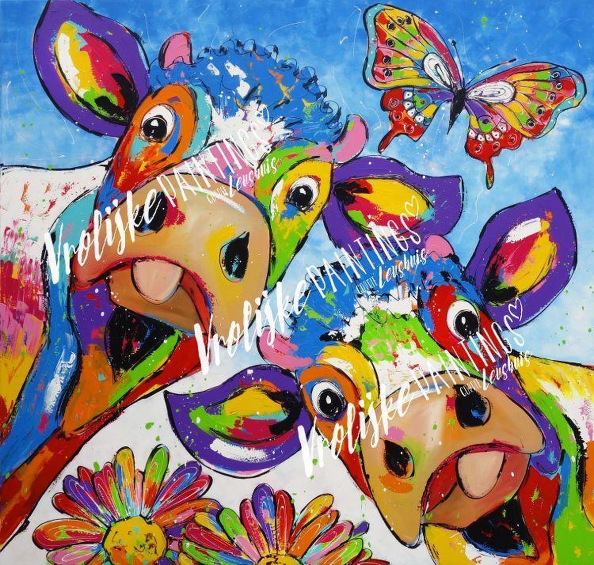 Painting By Number schilderij 'Koeien met Vlinder' door Corrie Leushuis. "Vrolijke koeien met een vrolijke fladderaar. Koeien zijn mooie en nieuwsgierige dieren." Veel painting plezier! ? Corrie Leushuis Kunstschilder Vrolijke Paintings