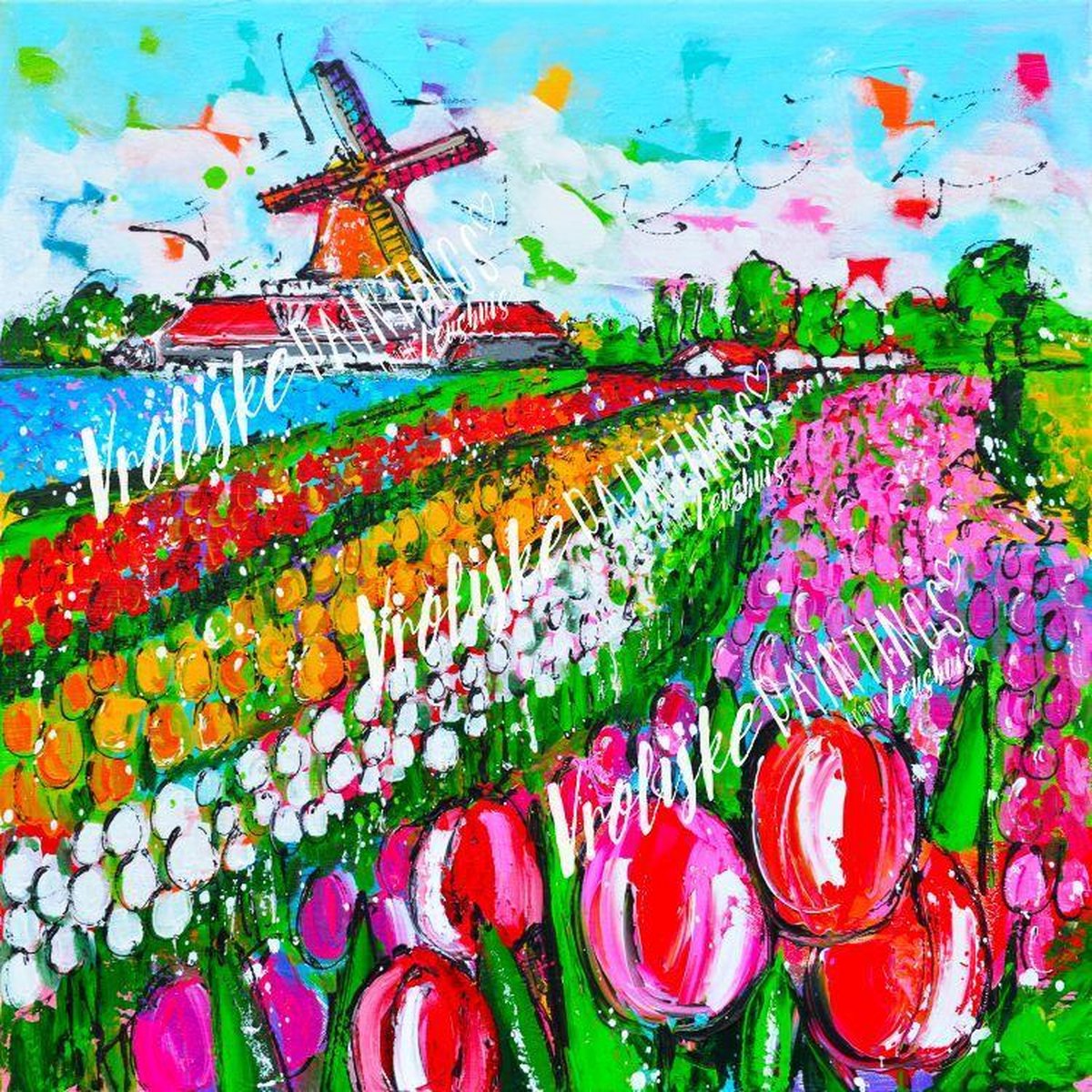 Painting By Number schilderij 'Tulpenveld' door Corrie Leushuis. "Als je bij de tulpenvelden komt zie je dat de bollenboeren de mooiste kunstwerken maken. Waar een klein land groot in kan zijn, Hollandse glorie!" Veel painting plezier! ? Corrie Leushuis kunstschilder Vrolijke Paintings
