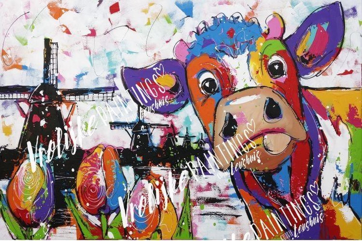 Painting By Number schilderij 'Hollandse Koe' door Corrie Leushuis. "Deze vrolijke koe heeft het maar getroffen met zo’n uitzicht. Dat is een waarheid als een koe!" Veel painting plezier! ? Corrie Leushuis Kunstschilder Vrolijke Paintings