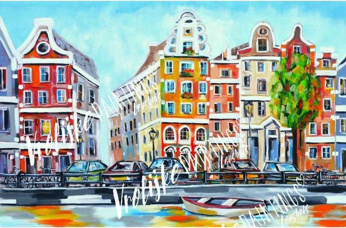Painting By Number schilderij 'Grachtenpanden' door Corrie Leushuis. "Ik mag graag bij de grachten rondlopen en schilderen. Een bruisende stad is immers een steeds veranderend kunstwerk." Veel painting plezier! ? Corrie Leushuis