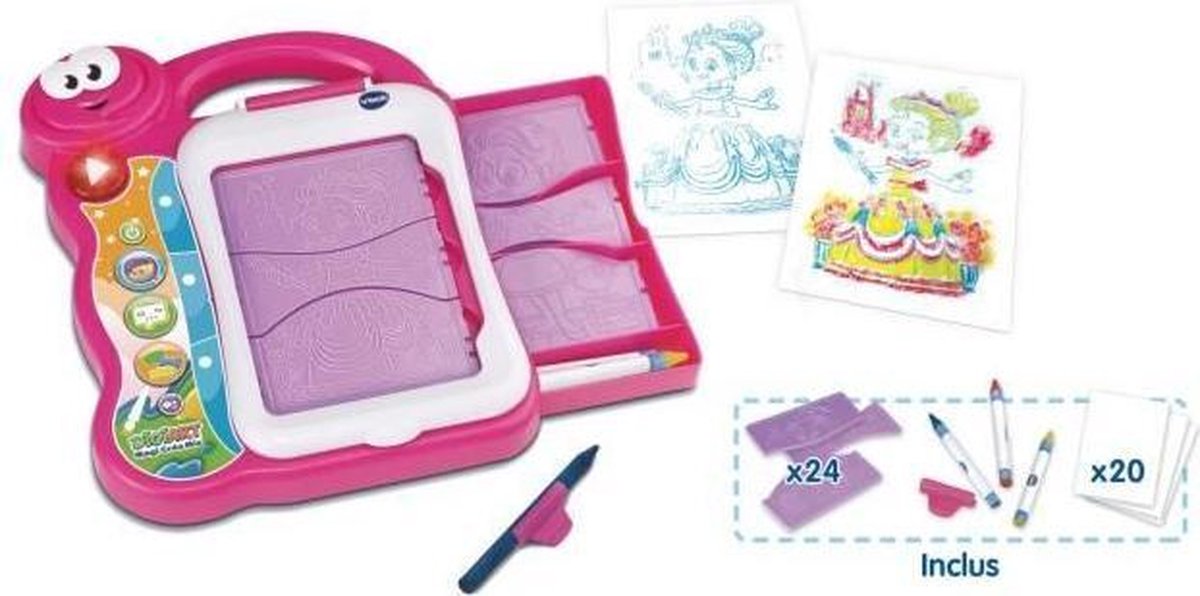 VTech Magi Créa Mix (Rose), DigiArt. Kleur van het product: Multi kleuren, Aanbevolen geslacht: Jongen/meisje, Aanbevolen leeftijd (min): 4 jaar. Type accu/batterij: AA. Breedte: 207 mm, Diepte: 39 mm, Hoogte: 254 mm. Breedte verpakking: 275 mm, Diepte verpakking: 58 mm, Hoogte verpakking: 279 mm