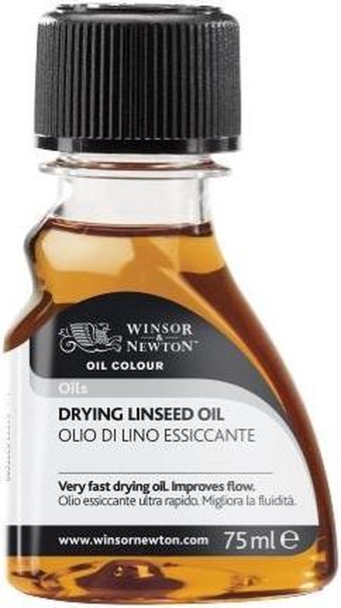 Drogende lijnolie Deze olie is donkerder dan geraffineerde lijnolie, geeft van alle oliën de snelste droging en versterkt daarbij de glans en transparantie. Deze snel drogende lijnolie verbetert de vloeiwerking en kan toegevoegd worden voor een versnelde droging Inhoud: 75 ml