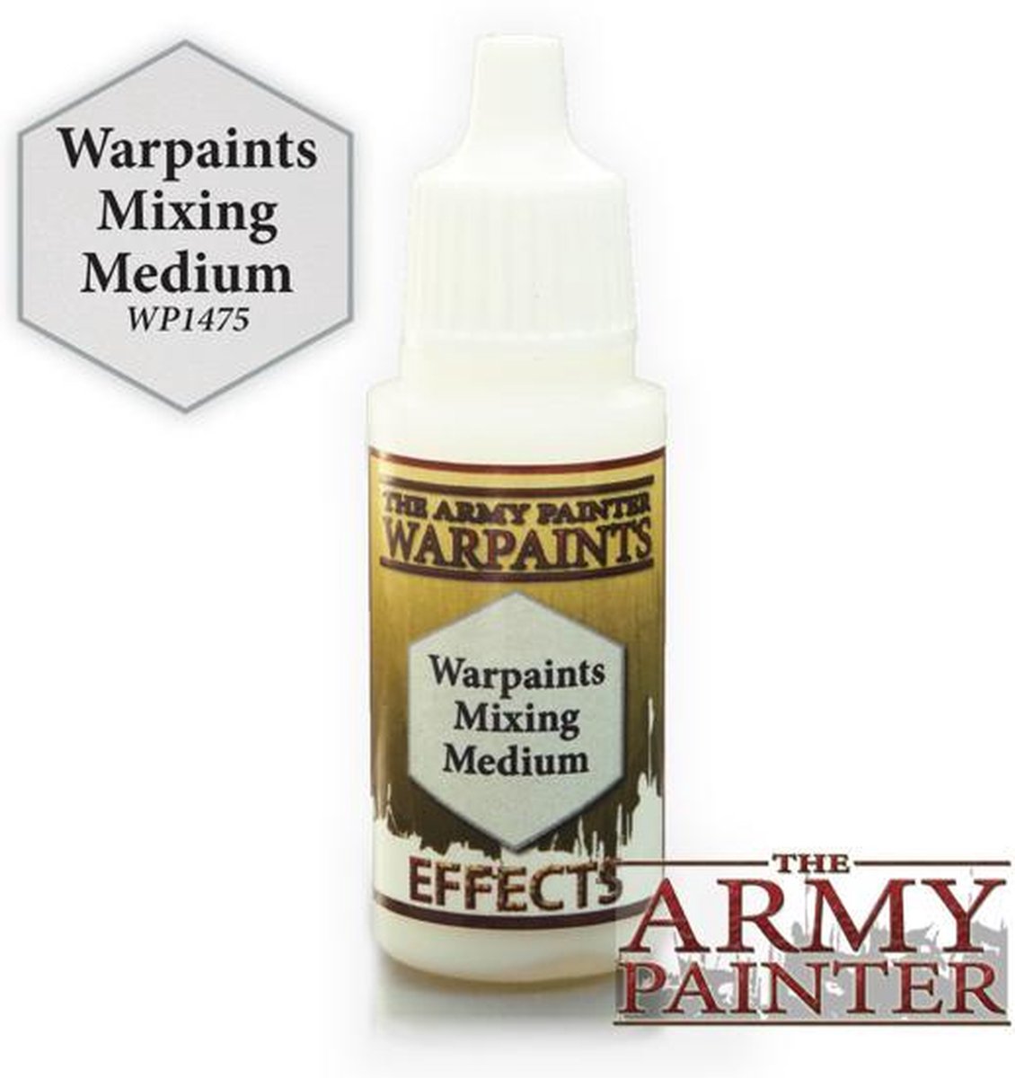 Special EFFECTS Warpaint. Mixing Medium is a transparent resin base designed to thin or dilute your regular Warpaint without changing the flow and viscosity of the Acrylic or Metallic Warpaint. Perfect when building up highlights for blending layers. Add a little at a time untill you're happy with the effect.Effects Warpaints The Effects paints have been developed to create realistic looking effects to painted miniatures. Effects paints are usually the last you will paint onto a miniature as some of them are glossy (Blood, Slime and Wet Mud for instance). There are 9 Effects paints also covering Mixing Mediums & Varnishes.The Warpaints range of high pigment colours can be used for miniatures from any period, any size and any system. Supplied in 18ml Dropper Bottles, they provide easy application and even coverage - so, whether you play with large or small scale models, fighting upon ancient or futuristic battlegrounds, these high quality paints are ideal!