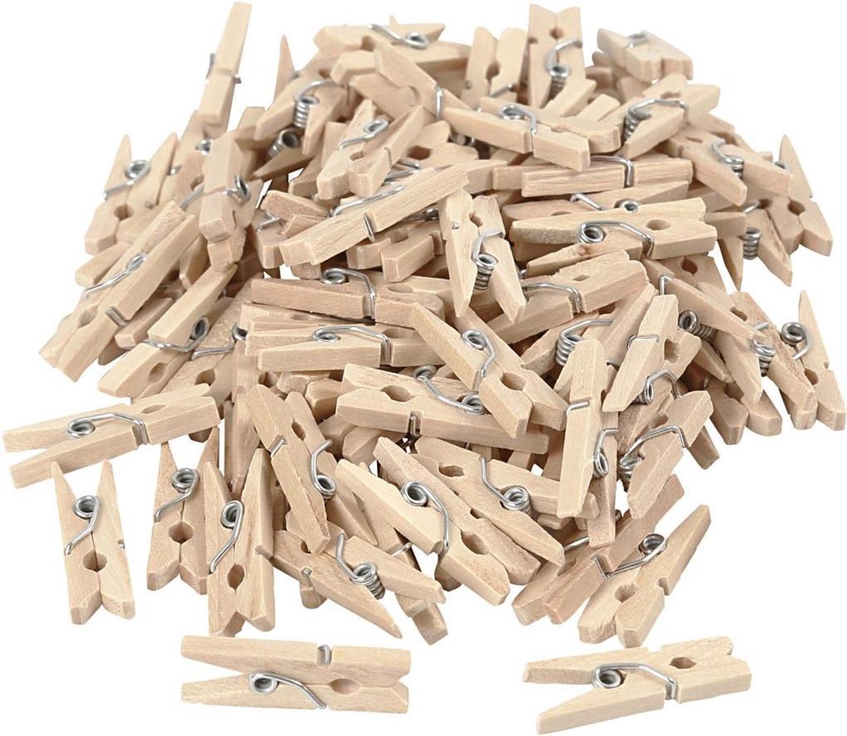 Praktische houten wasknijpers van licht hout met sterke metalen spiraal.Praktische houten wasknijpers van licht hout met sterke metalen spiraal.