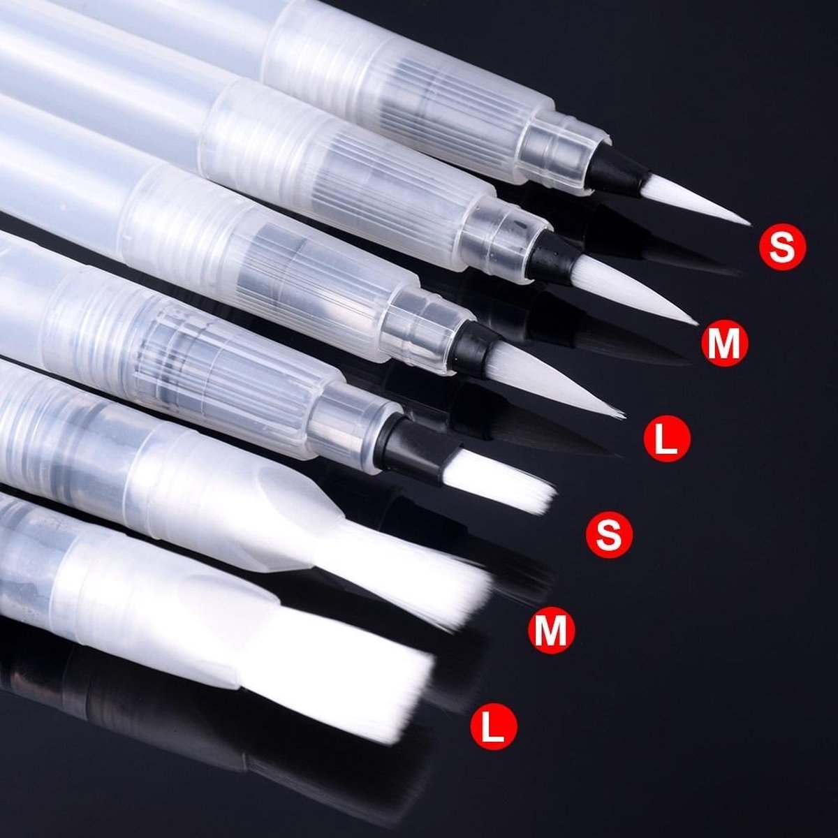 Met deze set van zes water brush pennen maak jij de mooiste kunstwerken. Voor de hobbyist als voor de professionelere kunstenaar. De drie pennen hebben verschillende maten, zo kun je perfect details aanbrengen, maar ook voor het grotere werk zijn de pennen uitermate geschikt. Daarnaast zijn ze erg makkelijk in gebruik. Vind jij het ook vervelend om met bakjes water te werken tijdens het schilderen? Of wil jij flexibeler zijn tijdens het schilderen? Deze water brush pennen bieden uitkomst! Ook is deze set super leuk om cadeau te geven. Specificaties ? Set van Zes water brush pennen. ? Verschillende maten ? Geschikt voor details en het grotere werk. ? Liggen lekker in de hand. ? Origineel cadeau! Gebruiksaanwijzing Hoe gebruik je de water brush pen? Verwijder allereerst de achterkant van de pen en vul hem met water. Druk daarna zachtjes op de achterkant om het uiteinde van de pen vochtig te maken. Daarna kun je de pen gebruiken om in de verf te dippen en te gaan schilderen. Hoe maak je